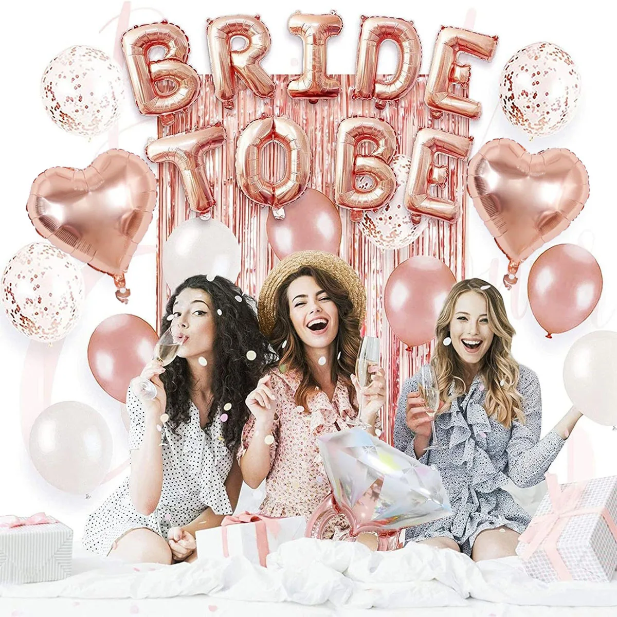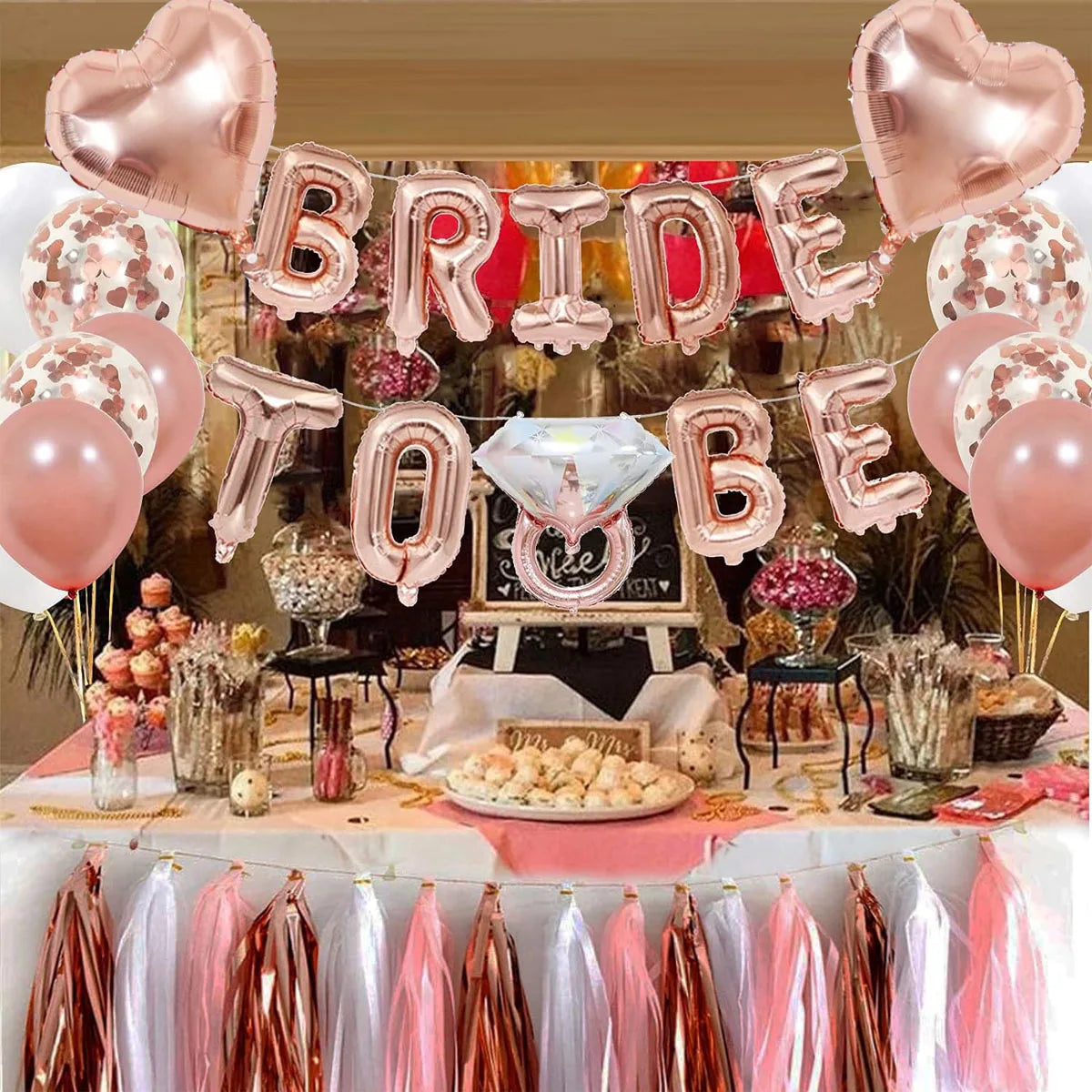 41 Pcs Rose gold Bride to be Balloon Tassel Diamond ring and heart decoration set bachelorette party bridal wedding supplies