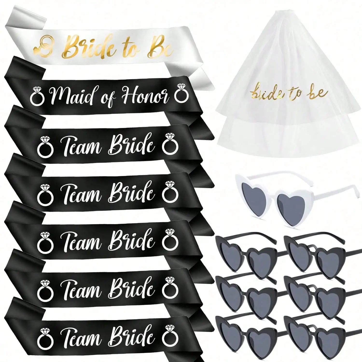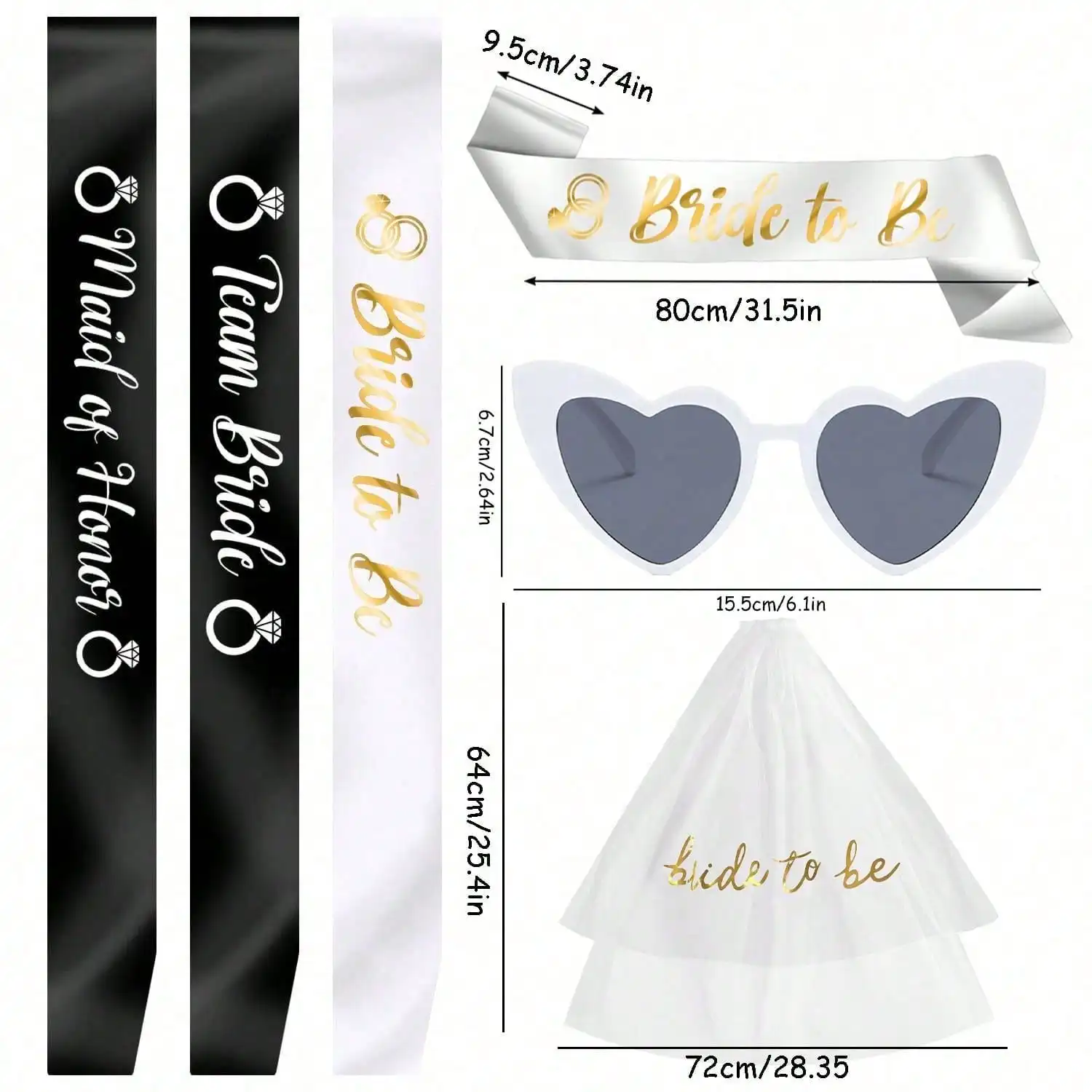 Bride To Be Maid Of Honor 4 different sets to choose from Sash Veil Glasses Set Wedding Party bachelorette Party Bridesmaid